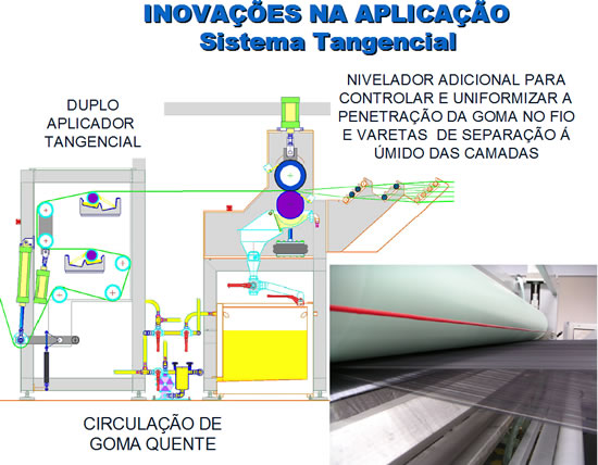 O Sistema Engomagem Tangencial é uma tecnologia que aplica uma cobertura de goma entorno dos fios (coroa).