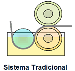 Neste novo conceito, a engomagem se realiza através de um principio onde se aplica a goma sem mergulhar na solução formando entorno do fio uma Coroa.